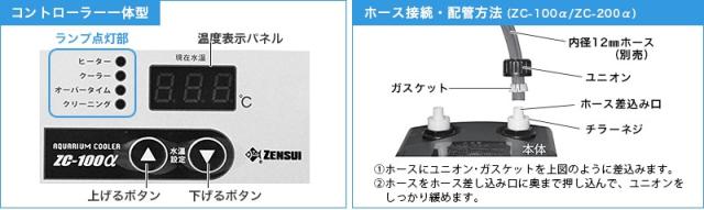 夏場の水温管理に!快適な水槽環境の必需品!ゼンスイ 水槽用クーラー ZC-200α (冷却水量200L以下/淡水・海水両用) ゼンスイのZCシリーズは静音性&省エネ&耐久性を追求した、屋内専用の高性能モデルの小型クーラーです。従来機種に比べ冷却効率が約50%アップしたため、電気代もグンとお得になりました。また高精度の水温管理が可能なため、海水水槽はもちろん、熱帯魚やシュリンプ・水草・サンゴの管理にもおすすめです。