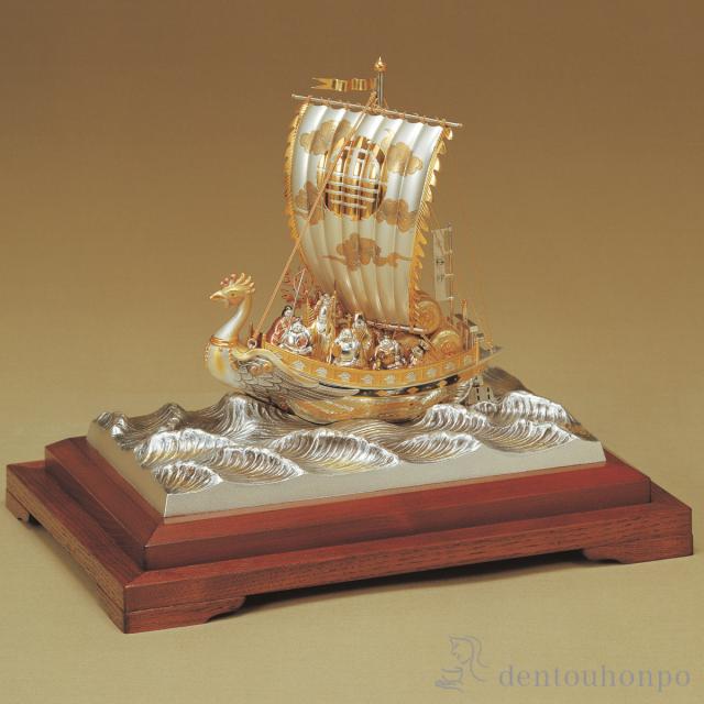 「送料無料」 銀製 宝船 七福神 B 205g ( 武比古 木札名入れ有料 置物 七福神 恵比寿 大黒 幸運 東京銀器(銀工芸) 結婚 出産 )