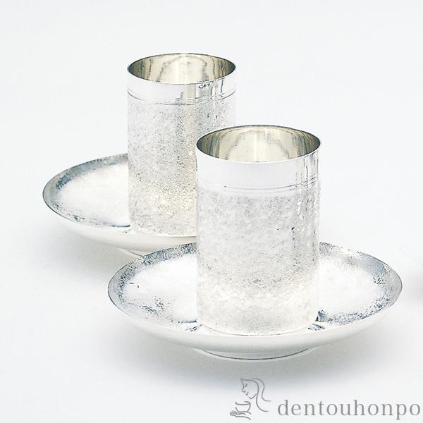 「送料無料」 銀製 湯呑 岩石 茶托付 小 ( 湯呑み 湯のみ セット 湯飲み おすすめ セット 東京銀器(銀工芸) 結婚 出産 )