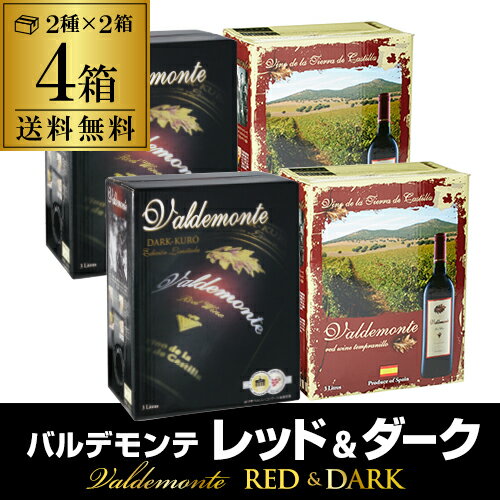 送料無料 箱ワイン バルデモンテ3L レッド & ダーク 飲み比べ4箱セット 長S