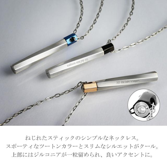 数量限定 ザニポロタルツィーニ スティック ステンレス ネックレス ブラック ブルー ピンク チェーン付き ペンダント 金属アレルギーフリー 棒 バー
