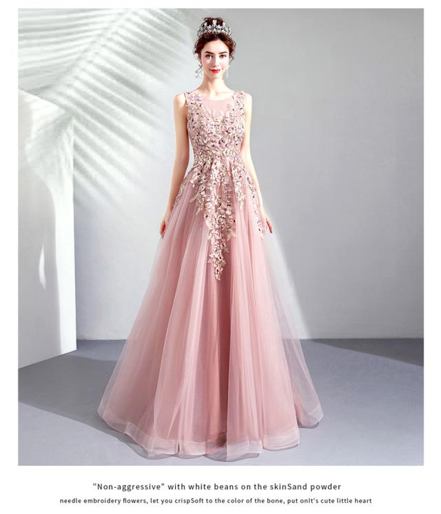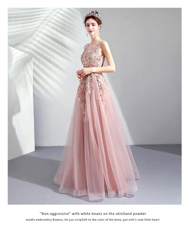 超人気 カラードレス ロングドレス パーティドレス ワンピ ピンク チュールスカート 小さい~大きい結婚式 二次会 発表会 演奏会 撮影 D033