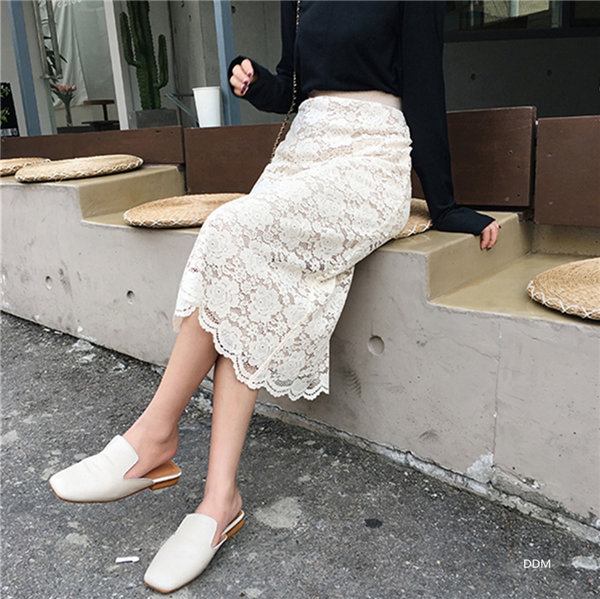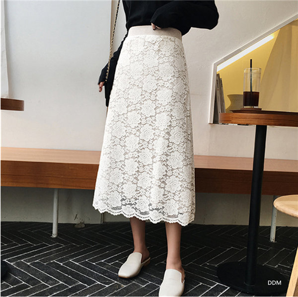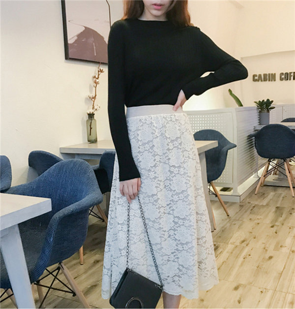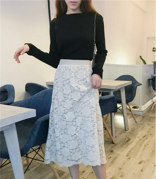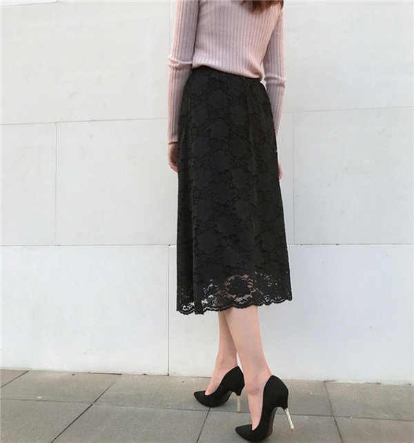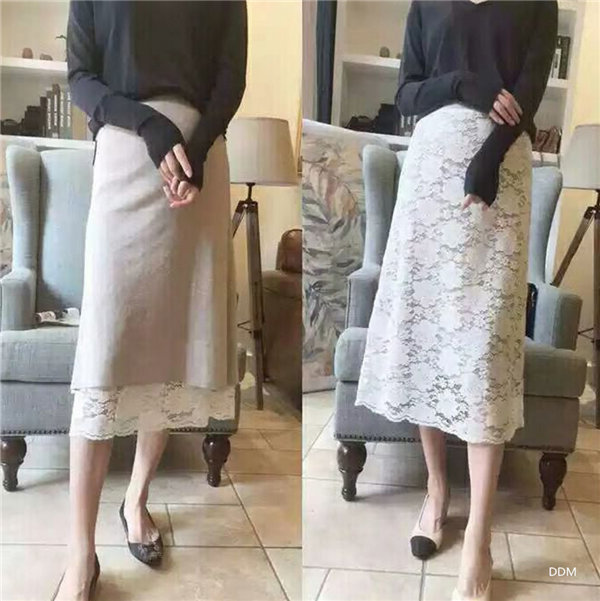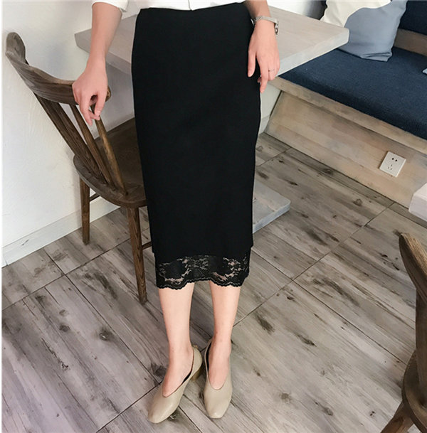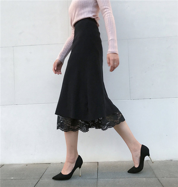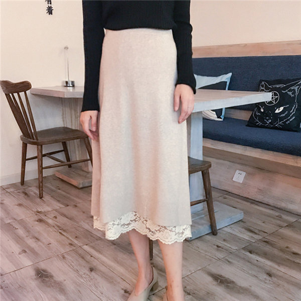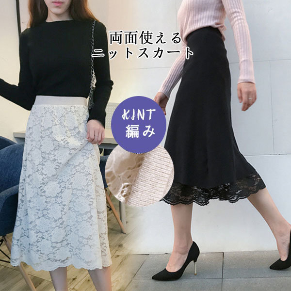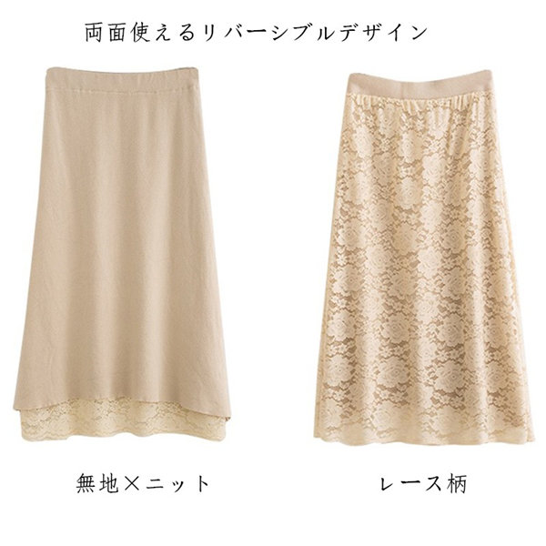 メ便送料無料 ニットスカート レース柄スカート レディース タイトスカート リバーシブル ミモレ丈 ひざ丈 マキシスカート 春秋冬