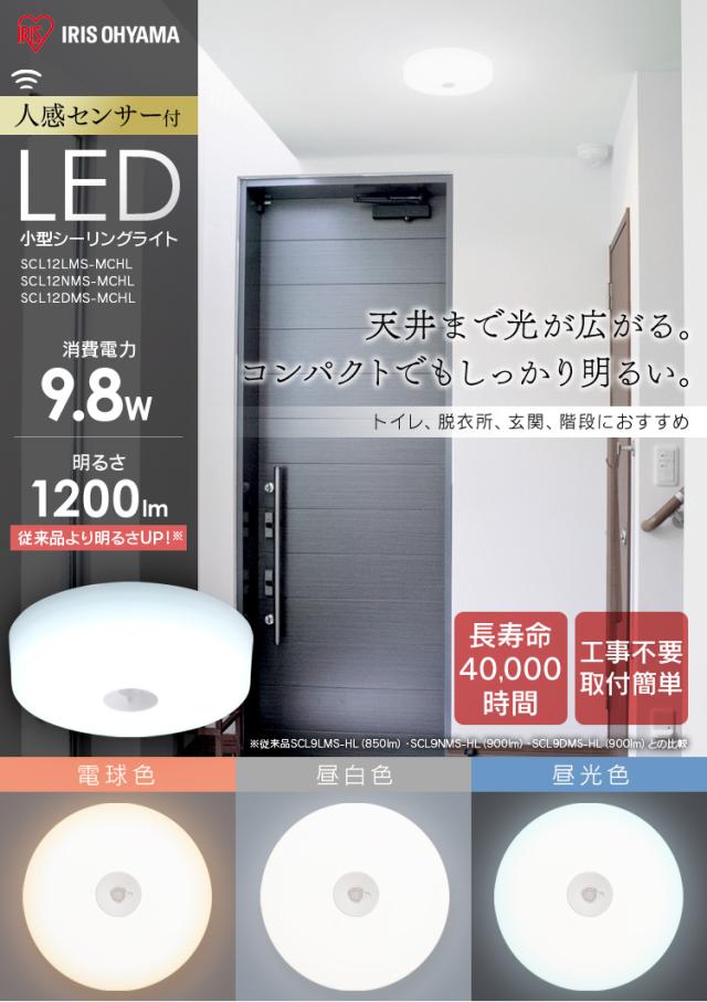 LED ライト シーリングライト アイリスオーヤマ 小型 メタルサーキットシリーズ 1200lm 人感センサー付き 昼光色 昼白色 電球色 SCL12DMS-MCHL 安心延長保証対象