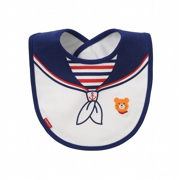 セーラー襟やネックレスのプリントの入ったスタイ。