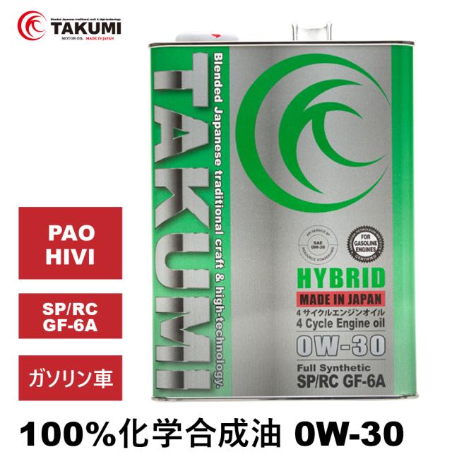 エンジンオイル 0W-30 4L SP/RC GF-6A ガソリン車 化学合成油 API取得 TAKUMIモーターオイル 自動車用エンジンオイル 4輪 エンジンオイル 送料無料 HYBRID0W-30