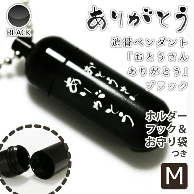 遺骨ペンダント メモリアルペンダント ブラック ( 中 ) 「 おとうさん ありがとう 」