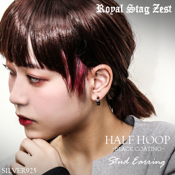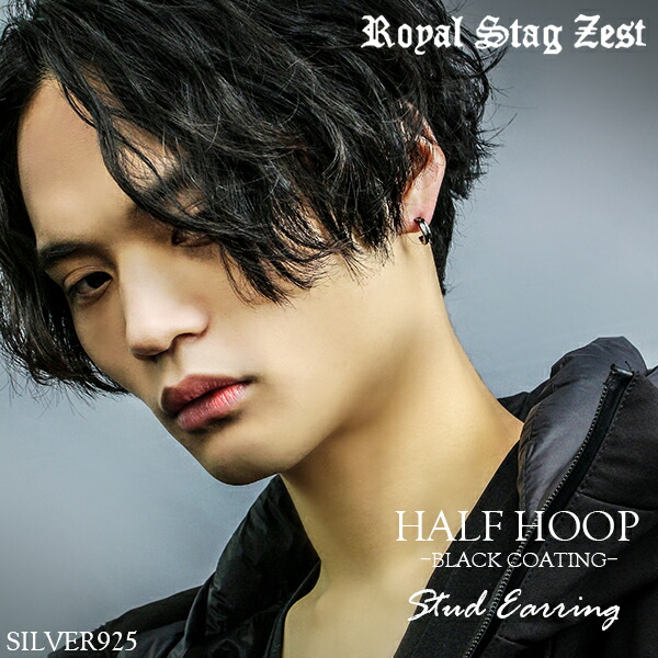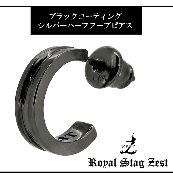 【Royal Stag ZEST】 ライン ハーフフープ ブラック シルバーピアス(1P 片耳用)