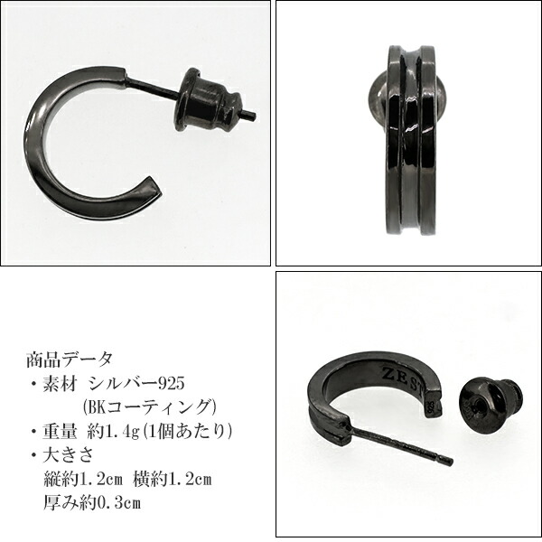 シルバー925 メンズ ブラックコーティング フープ スタッド ピアス ブランド 【新宿 銀の蔵】