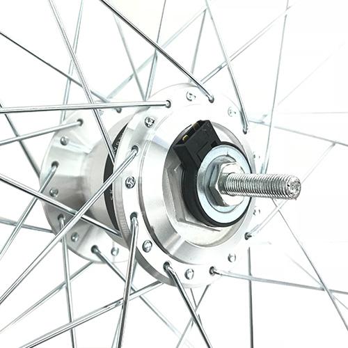 走行時にペダルが重くならない事で人気のハブダイナモを標準装着したリム完組みです。