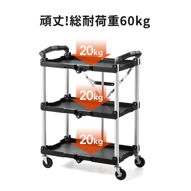 折りたたみ ツールワゴン3段 キャスター付き ツールカート 台車 ワゴン 簡単収納[100-CART008]
