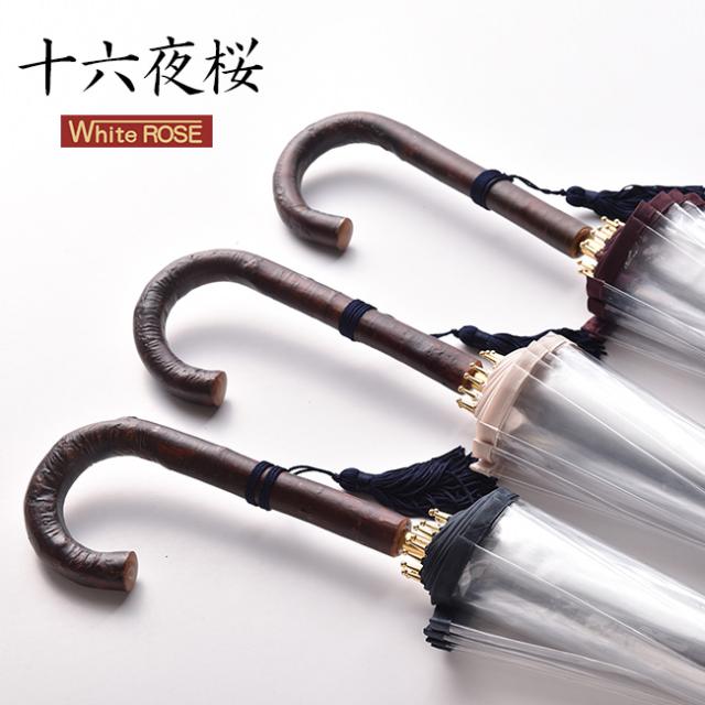 【材質】生地:オレフィン系多層フィルム 親骨:グラスファイバー(FRP) 受骨:スチール 中棒:アルミ(2段) 手元・石突:皮付き桜(天然木)