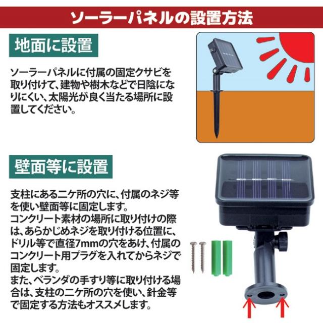 ソーラーパネルを壁面や手すり等に固定もできます。