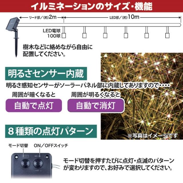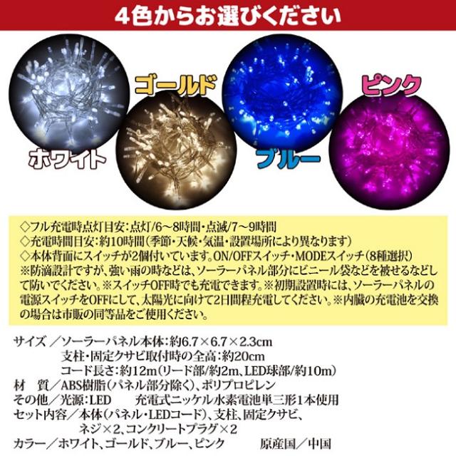 イルミネーションライト 屋外 LEDソーラーイルミネーション100球 ピンク