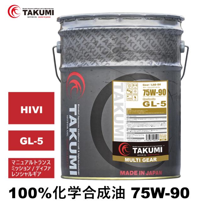 ギアデフオイル 20L 75W-90 GL-5 LSD対応 化学合成油 トランスミッション ディファレンシャル ギヤオイル ギアオイル TAKUMIモーターオイル MULTI GEAR 75W-90