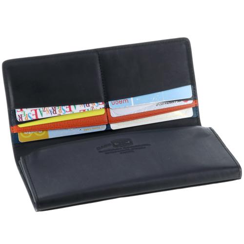 開口部はフラップ式で楽々開閉。豊富なカードポケットやファスナー式の小銭入れ等、機能性もしっかりと備わっています。