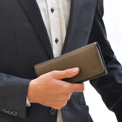 | 上質なイタリアンレザーを贅沢に使用した長財布です。型押しのロゴがアクセントのしっかりとレザーの風合いを感じられる、シンプルな佇まい。 財布の内側にはカラーレザーをあしらっているので、開けたときにちらりと覗きさり気ない遊び心が感じられるデザインです。 開口部はフラップ式で楽々開閉。豊富なカードポケットやファスナー式の小銭入れ等、機能性もしっかりと備わっています。 |