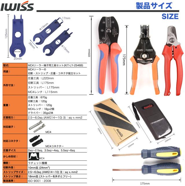 IWISS 太陽光 ソーラーパネル MC4ソーラーの切断・ストリップ・圧着・コネクタ組立 工具セット2.5/4/6mm2対応 KIT-LY-2546B