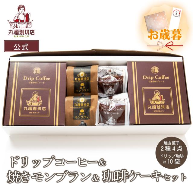 【送料無料】丸福珈琲店 御歳暮 クリスマス 内祝い 伝承香味 ドリップコーヒー10袋&焼きモンブラン 珈琲ケーキ 詰合せ 老舗 スイーツ 焼き菓子 個包装 常温保存