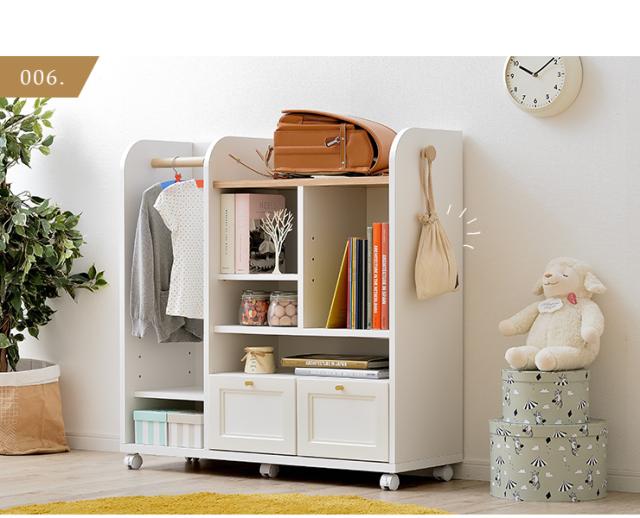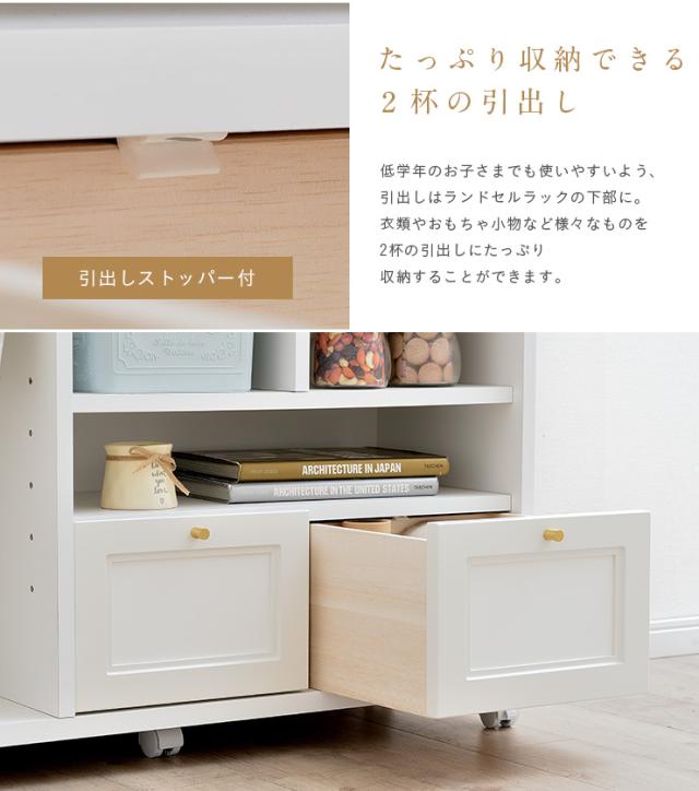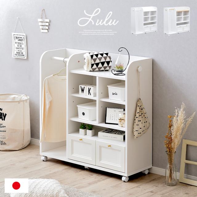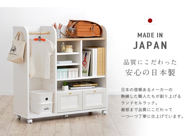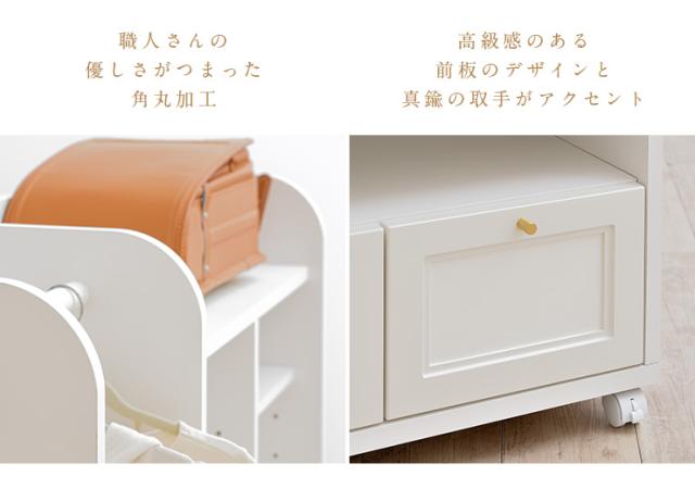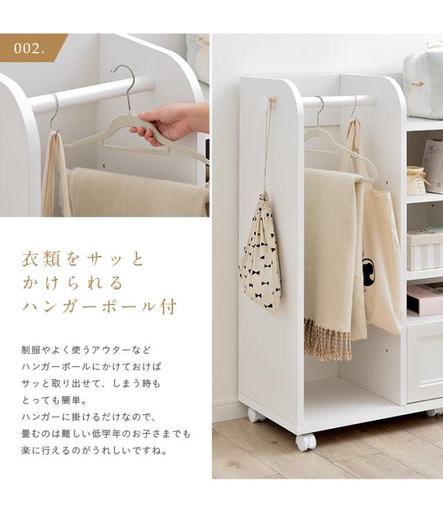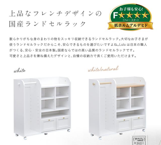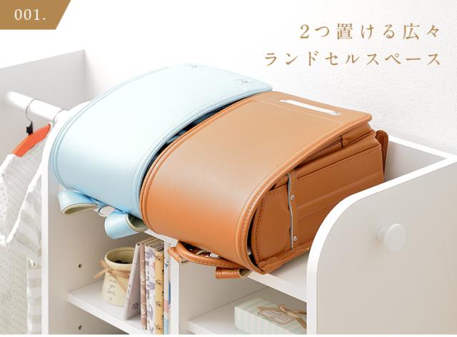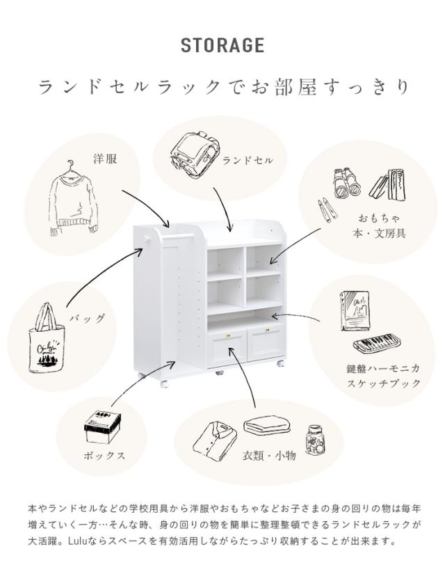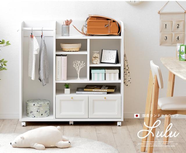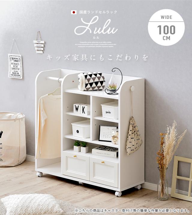 【国産/簡単組立/大容量収納】幅100cm ランドセルラック Lulu(ルル) キャスター・ハンガーポール付き 2色対応 ホワイト おしゃれ 子供部屋 ランドセル収納 ワイド 引き出し リビング収納 女の子 木製 2人用 大容量