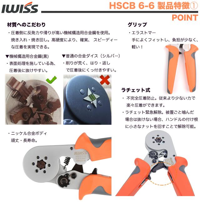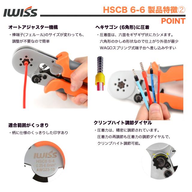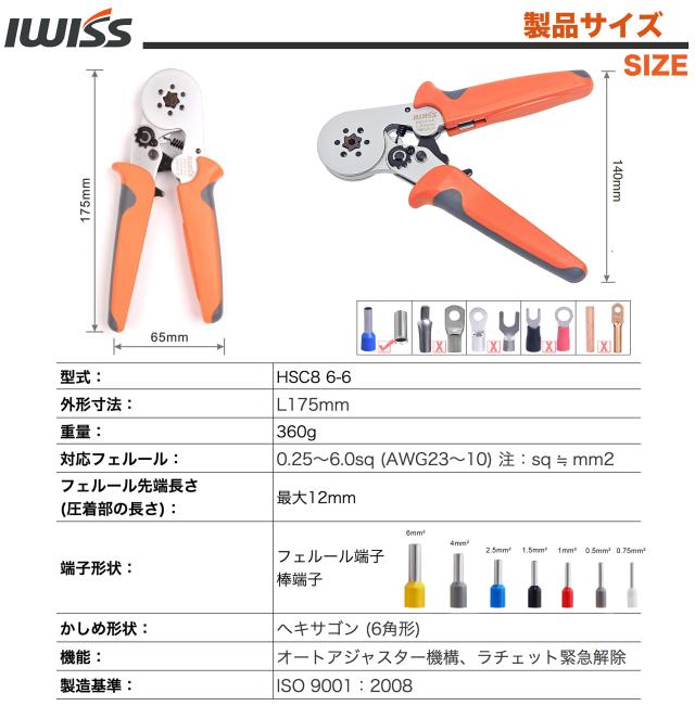 IWISS フェルール用圧着ペンチ EDM加工ダイス ワイヤーエンドスリーブ用 棒端子用 0.25-6.0mm2 HSC8 6-6A [並行輸入品]