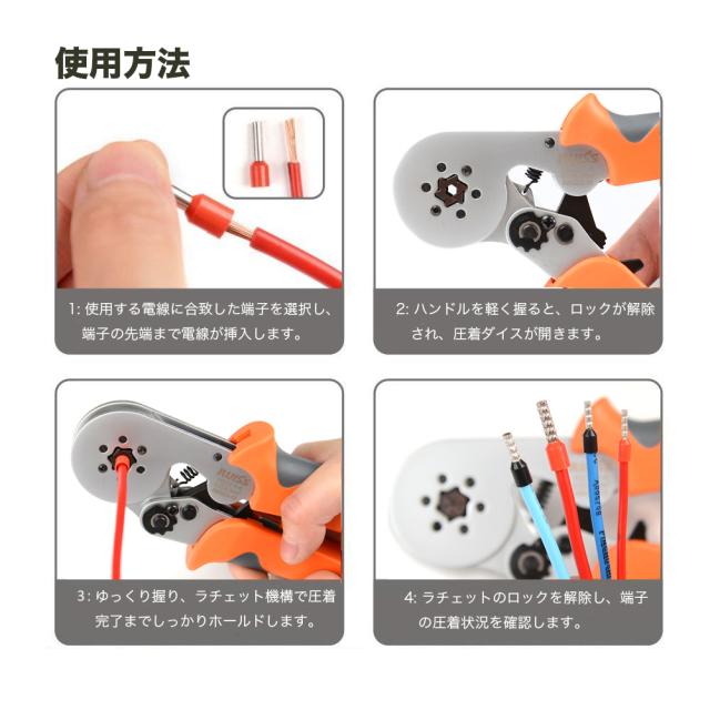 適合:ハンダ付けを必要としない端子(エンドスリーブ / 棒端子 / コンタクト棒端子 / 絶縁スリーブ