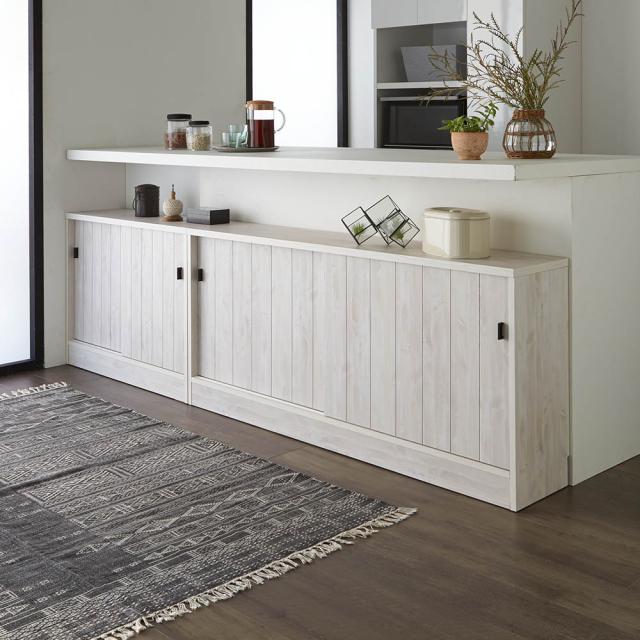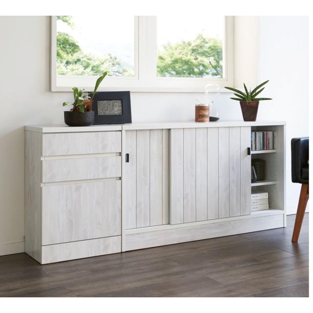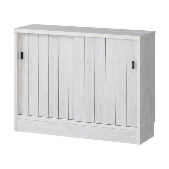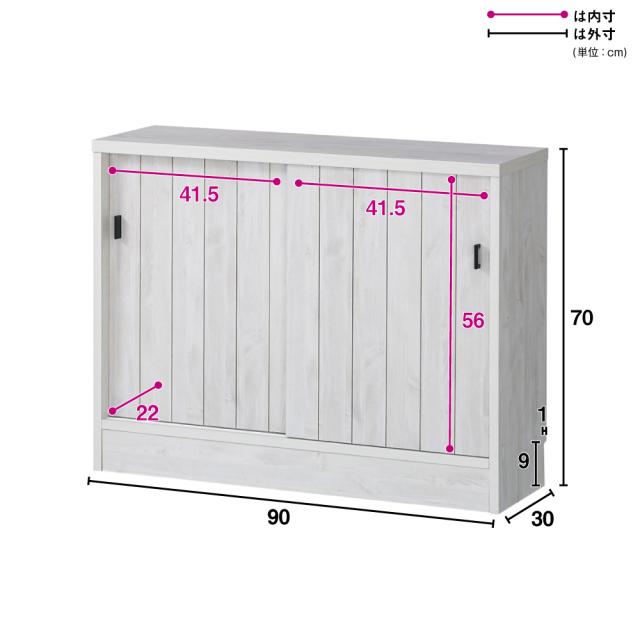 ヴィンテージ風の白い木目がおしゃれな、引き戸式のカウンター下収納棚です。 ※お届けは収納庫・幅90cm高さ70cmです。