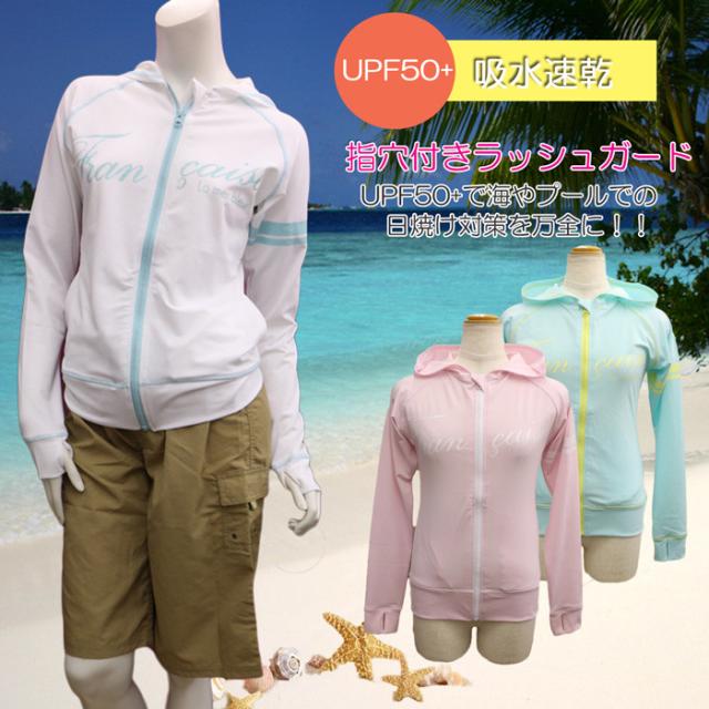 ラッシュガード 水着 レディース ロング 指穴付きパーカー UPF50 UV パーカー UVカット加工 紫外線対策 ラッシュパーカー 吸水速乾 無地 長袖 春夏 白 ピンク ライム 大きいサイズ M L LL 3L