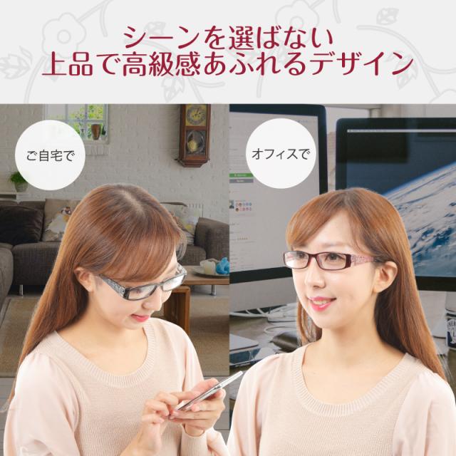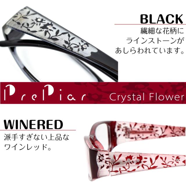 老眼鏡 おしゃれ レディース シニアグラス ブルーライトカット 花柄 3ヶ月保証 クリスタル 軽量 コンパクト メガネ 紫外線カット ラインストーン PrePiar 【101】