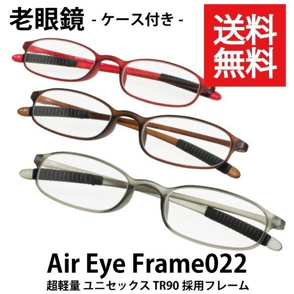 老眼鏡 ユニセックス 超軽量 ケース付 TR90フレーム 保証書付き Air Eye Frame022【022】