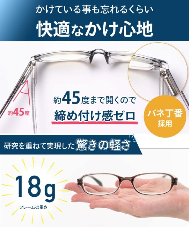 - しっかりしたオシャレな老眼鏡です。ブルーライトカットもなかなか良いです!