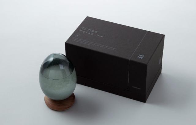 ●生命の鼓動を連想させる卵形のデザインで、日々の気温や気圧の変化に応じて中の硝子が結晶化現象をして、変化し続ける硝子のオブジェです。