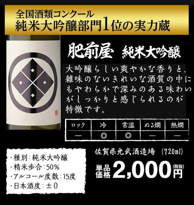 肥前屋 純米大吟醸 720ml 日本酒 清酒 四合瓶 4合瓶 佐賀県 光武酒造 [長S]