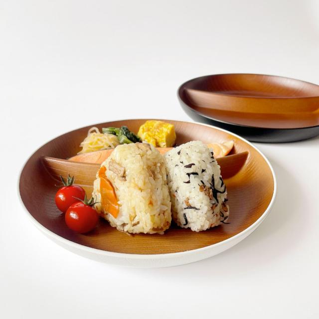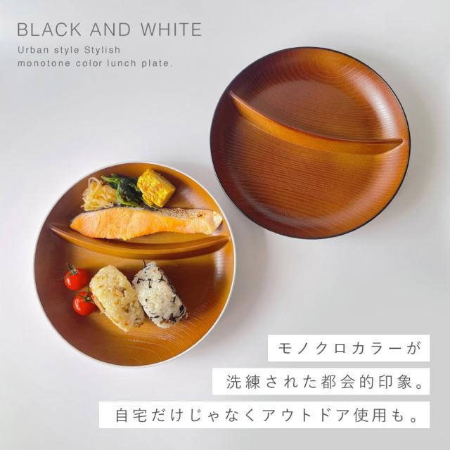 ランチプレート 仕切り 皿 丸 22cm ワンプレート 食器 食洗機対応 レンジ対応 日本製 山中塗 木目 白 黒 割れない 欅杢目サークルプレート ナチュール【モノトーン×木目・おしゃれな食器】 スタッキング 重ねられる ホワイト ブラック シンプル 軽い 軽量 高齢者 介護 ...