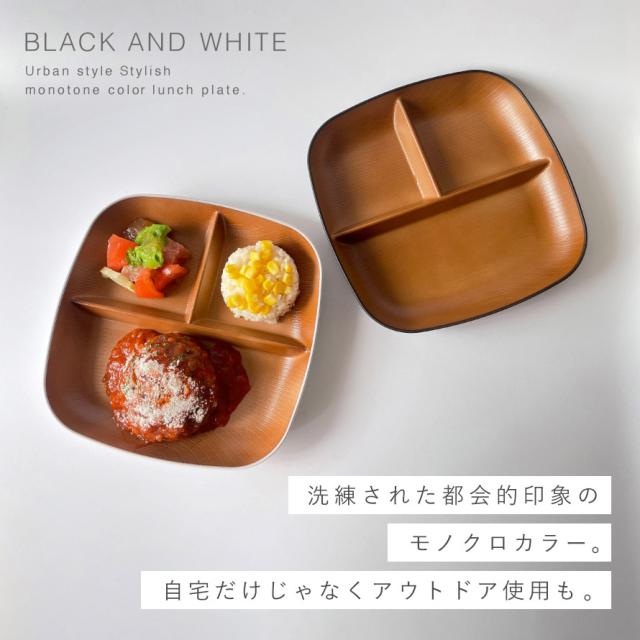 ランチプレート 仕切り 皿 22cm ワンプレート 食器 食洗機対応 レンジ対応 日本製 山中塗 木目 白 黒 割れない 欅杢目スクウェアプレート ナチュール【モノトーン×木目・おしゃれな食器】 スタッキング 重ねられる ホワイト ブラック シンプル 軽い 軽量 高齢者 介護 ...
