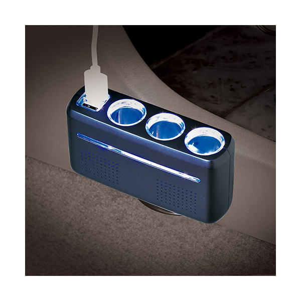 DC12Vソケットが3口、USBポートが2口付いた増設ソケットです