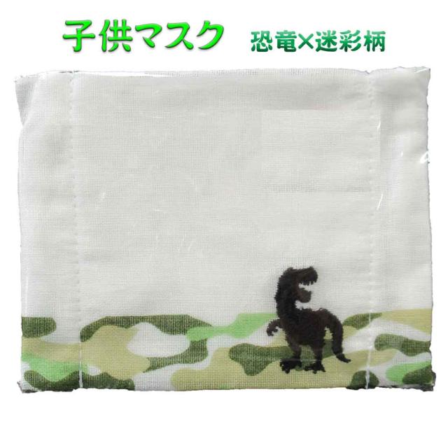 子供用マスク 恐竜×迷彩柄 耳にやさしい平ゴム キッズマスク 小学校 学校給食 保育園 幼稚園