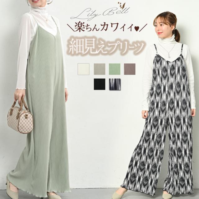 サロペット プリーツ パンツ レディース プリーツパンツ ワイドパンツ キャミソール ワンピース ノースリーブ 春 夏 大人 フレア アジャスター レオパード ダルメシアン 柄 無地 ドット柄 白 黒 マタニティ 低身長 きれいめ オールインワン ダルメシアン柄 キャミワンピ