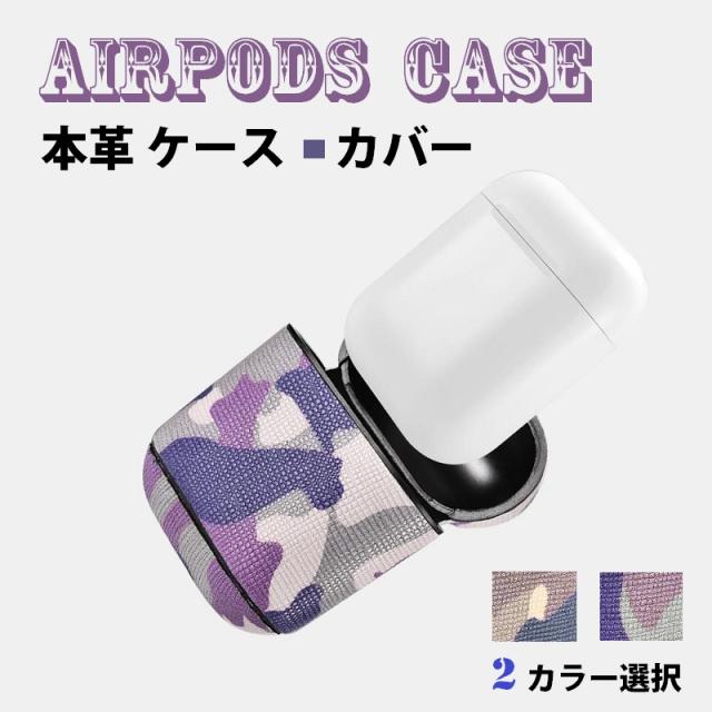 アップル AirPods エアポッズ用 本革 迷彩柄 レザーケース AirPods保護ケース セットしたまま充電可能 カモフラージュ迷彩 2パターン選択