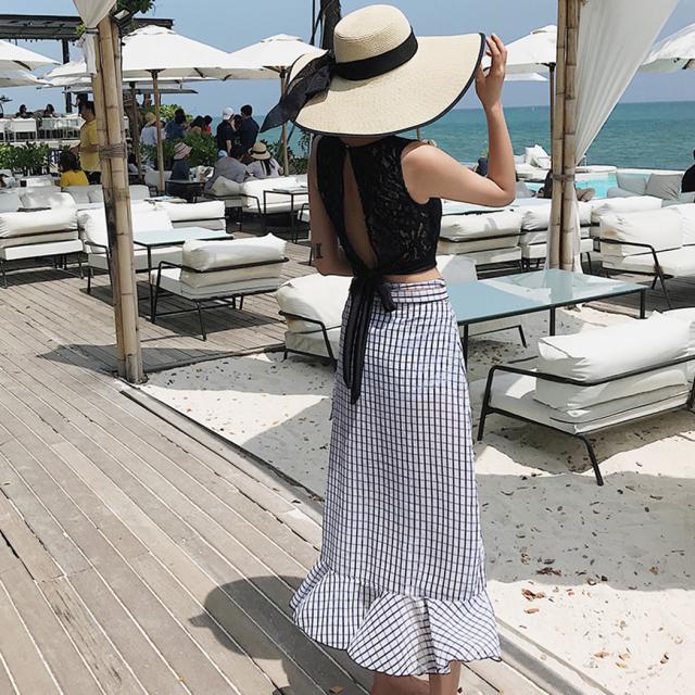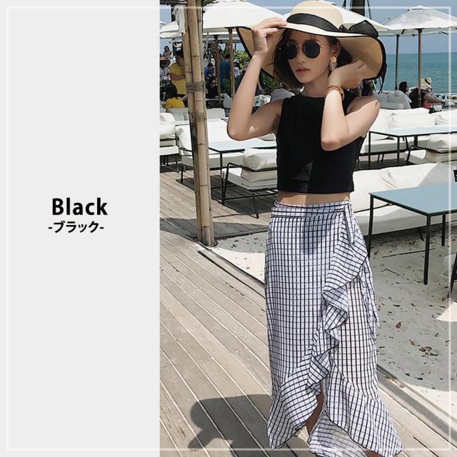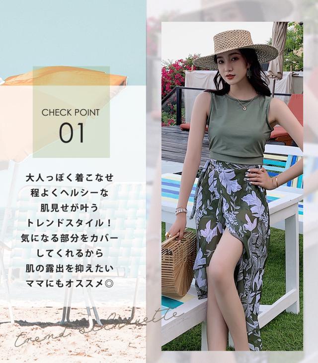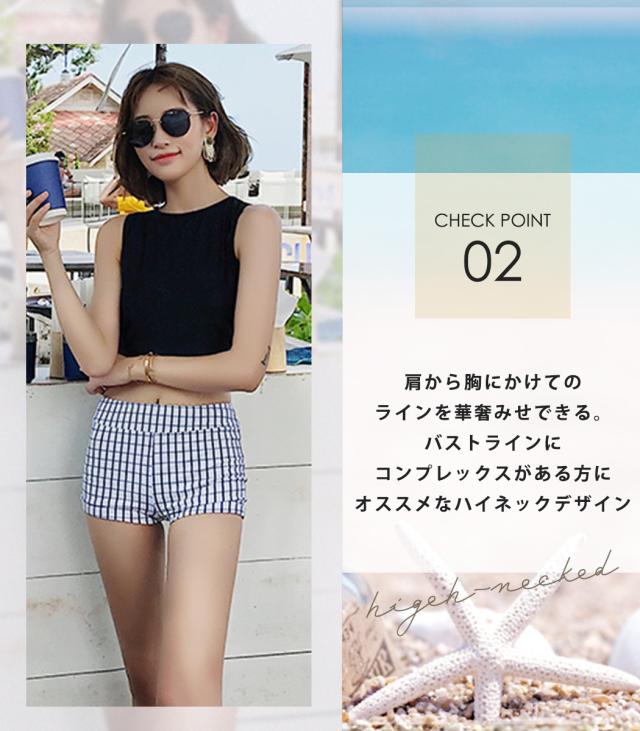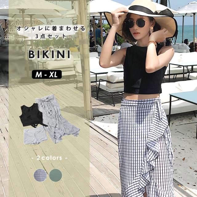 水着 レディース 体型カバー ハイネック ビキニ パレオ 3点 水着 セット タンキニ ママ水着 オトナ女子 20代 30代 40代 可愛い チェック柄 ミックスマッチ セクシー 水着 ハイウエスト 脚 お腹 お尻 太もも カバーアップ モノトーン ブラック 黒