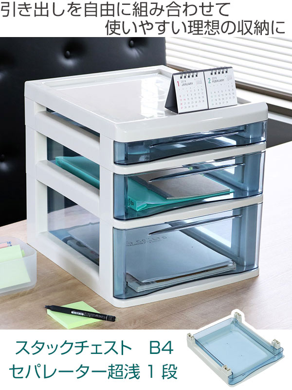 卓上収納 フロアーケース スタックチェスト B4 セパレート 超浅 ( 書類 収納ケース 収納ボックス 書類ケース 整理 収納 透明 ケース 引き出し 引出し 書類整理 机 卓上 レターボックス 事務用品 文房具 小物収納 整理整頓 )
