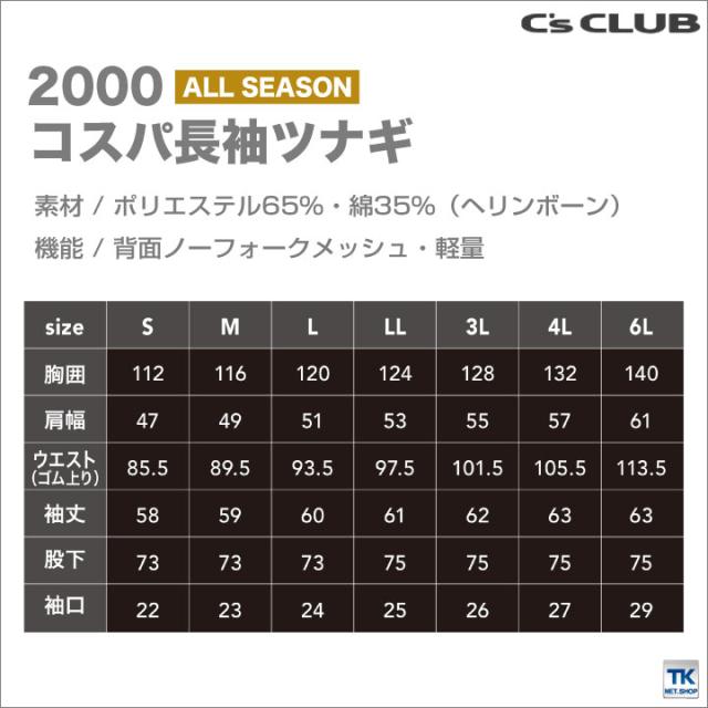 長袖ツナギ 軽量 コスパ 作業着 作業服 つなぎ ツヅギ 続服 ワークウェア 長袖 男女兼用 メンズ レディース 定番 無地 オールシーズン C's CLUB chusan 長袖つなぎ 年間 春夏 秋冬 cs-2000