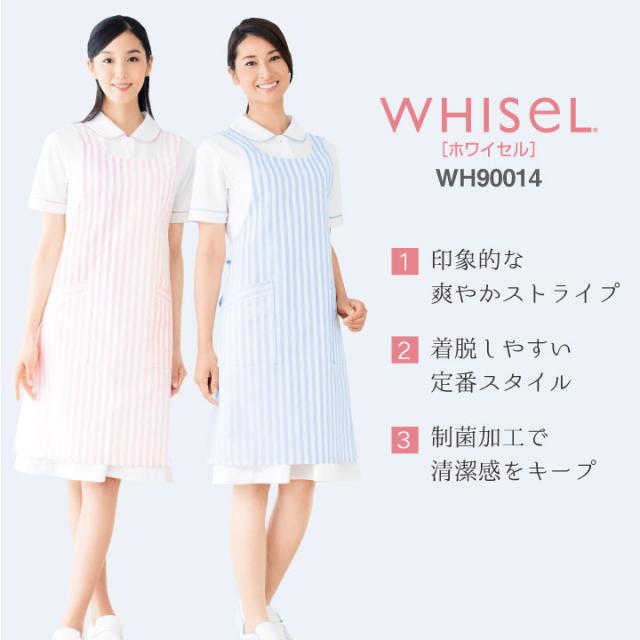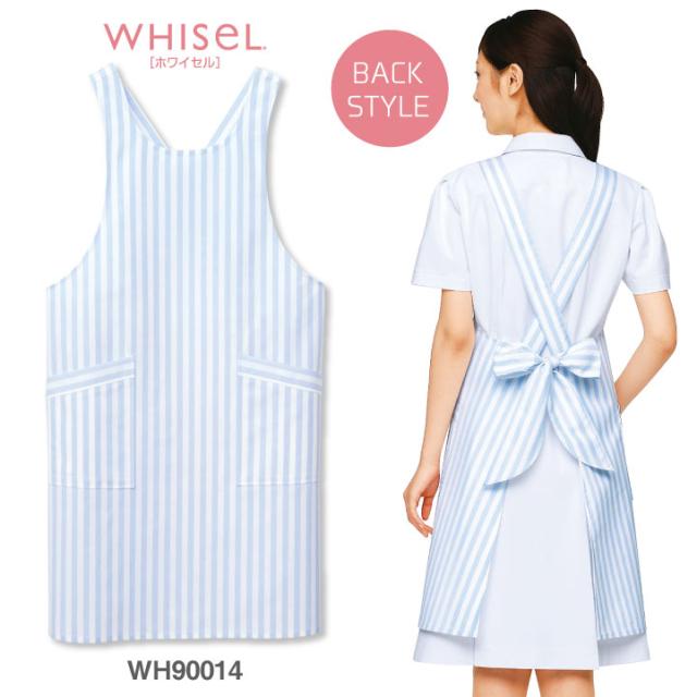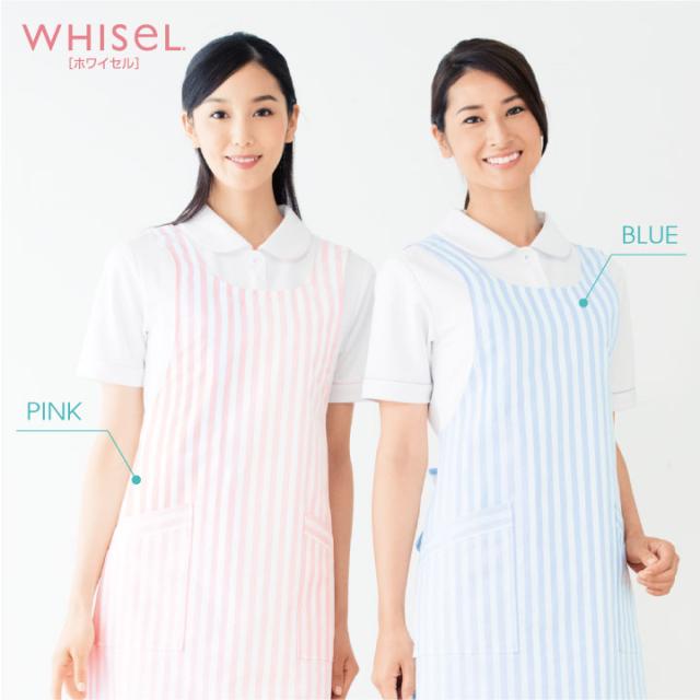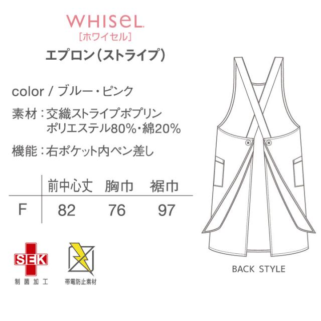 エプロン ストライプ ホワイセル 自重堂 白衣 作業着 メディカルウェア 医療 美容 介護 ユニフォーム レディース フリー 定番 清潔感 制電 WHISEL jd-wh90014