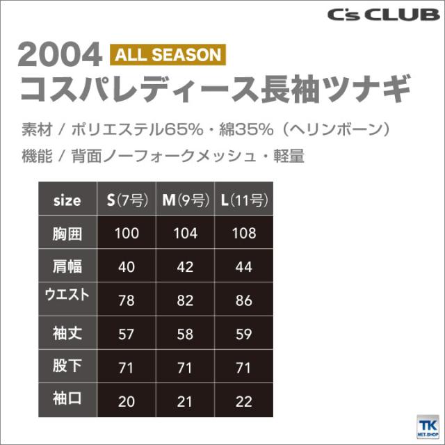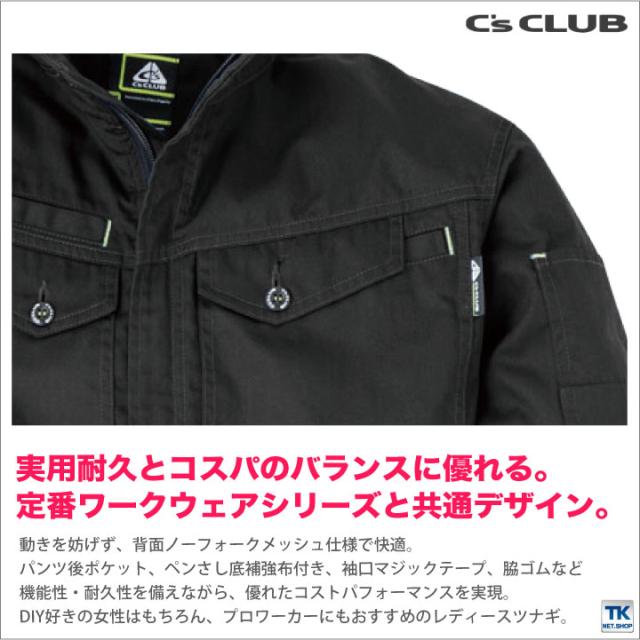 長袖ツナギ 軽量 コスパ 作業着 作業服 つなぎ ツヅギ 続服 ワークウェア 長袖 レディース DIY 定番 無地 オールシーズン C's CLUB chusan 長袖つなぎ 年間 春夏 秋冬 cs-2004