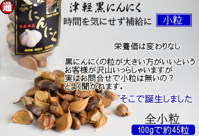 こちらの商品は当店、青森県産津軽にんにくを発酵熟成させた黒にんにくです 日頃より小粒の商品はないのですか?との数多くのお問い合わせがあり 小粒のみ(食べやすくこまめに補給などご要望で誕生しました 味(小粒の方が甘みがあります) こちらの商品は全部が小粒となり100gあたり約40粒〜50粒となります。 |