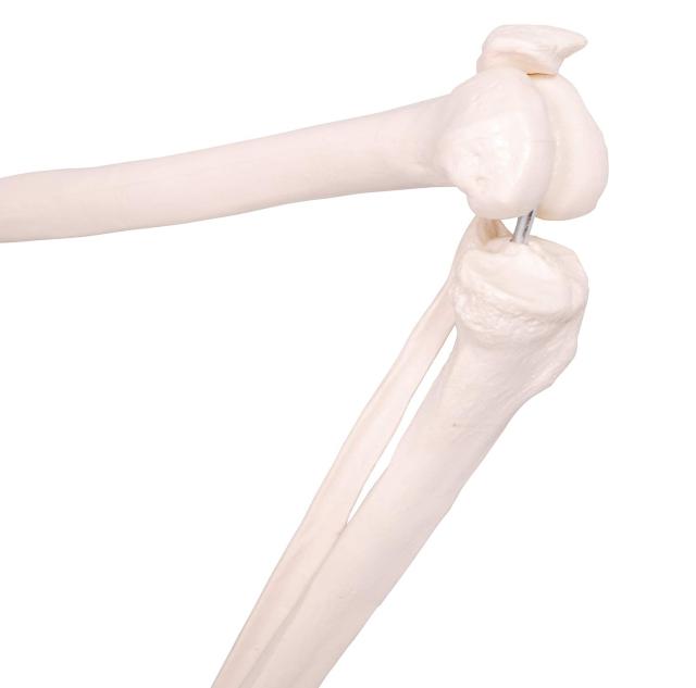 股関節部分は球体となっており、大腿骨(だいたいこつ)、膝蓋骨(しつがいこつ)、頸骨(けいこつ)、腓骨(ひこつ)、足の骨で構成されております。