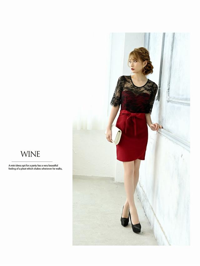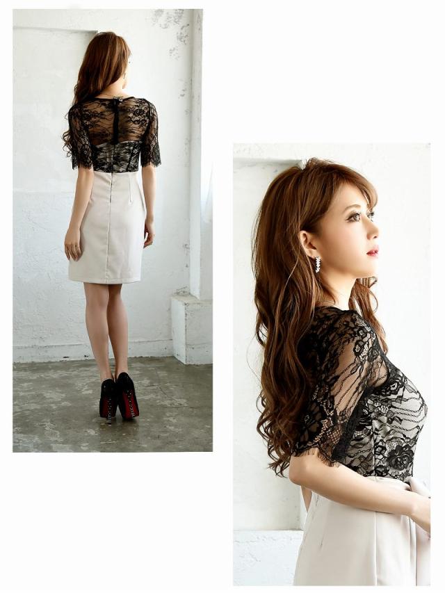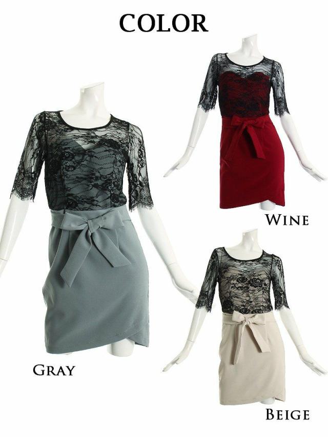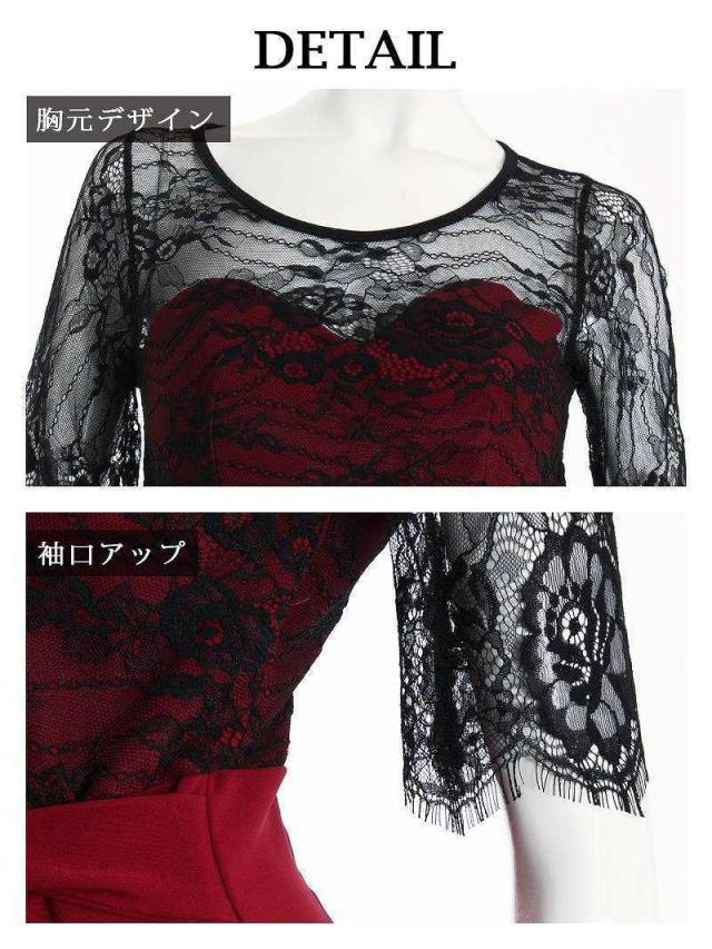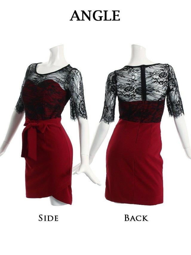 ☆透けレースがsexyなタイトドレスはチューリップカットの膝丈が上品な大人の女性を演出するレースミニドレス。