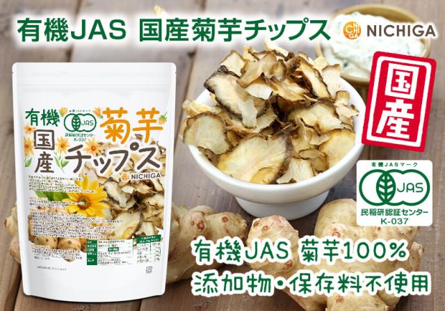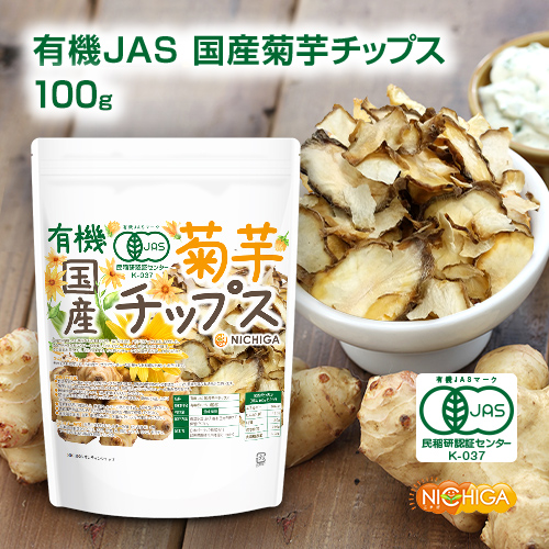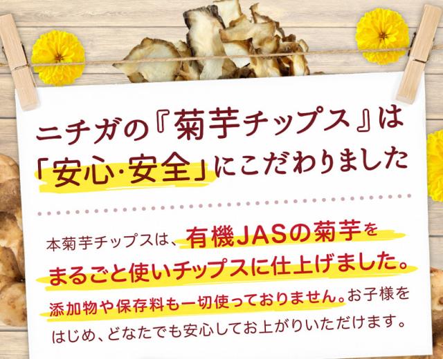 有機JAS国産菊芋チップス 100g 【メール便専用品】【送料無料】 国産の有機JAS菊芋をそのまま丸ごと使用 添加物や保存料不使用 そのまま食べられる [06] NICHIGA(ニチガ)