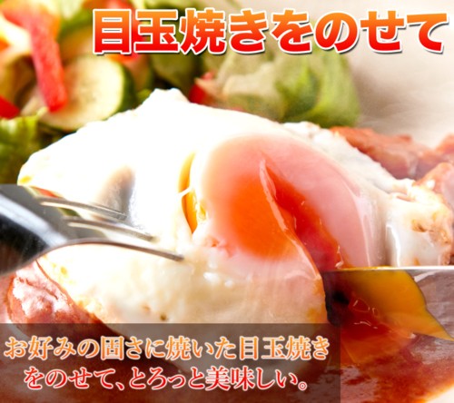 お好みの固さに焼いた目玉焼きをのせて、とろっと美味しい。