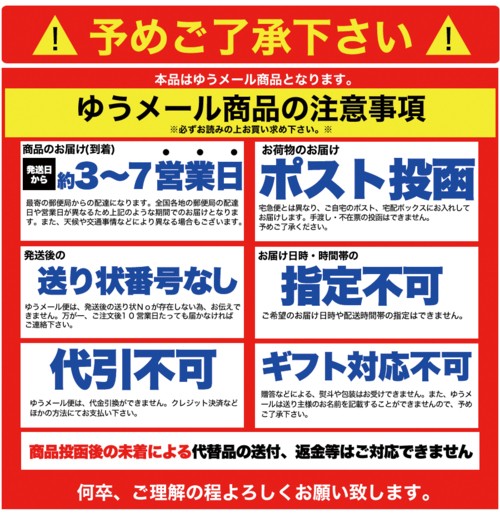 ・商品投函後の未着による代替品の送付、返金等はご対応できません。